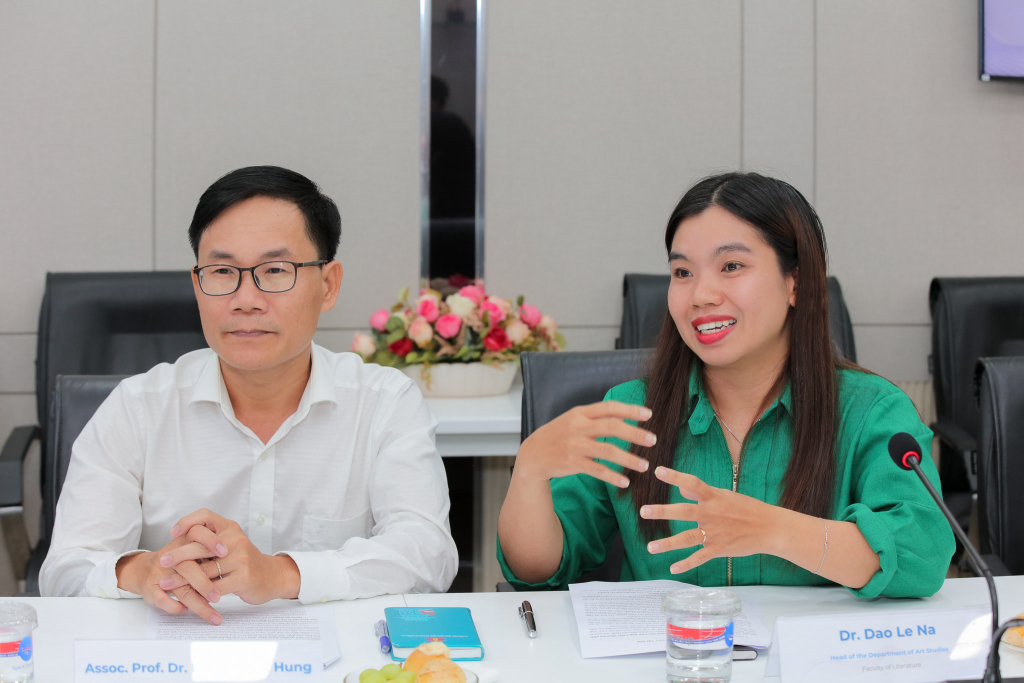 Ở lĩnh vực văn học – nghệ thuật, TS. Đào Lê Na, Trưởng Bộ môn Nghệ thuật học, Khoa Văn học, cho biết chương trình đào tạo của Bộ môn chú trọng gắn lý thuyết với thực hành, đặc biệt ở mảng biên kịch. “Điện ảnh là một siêu quyền lực’’ giúp truyền tải văn hóa, tri thức và giá trị nhân văn. Chúng tôi mong muốn cùng CJ CGV Việt Nam xây dựng các chương trình chiếu phim định kỳ, kết hợp tọa đàm để lan tỏa những giá trị đó”, cô chia sẻ. TS. Đào Lê Na cũng kỳ vọng triển khai chương trình thực tập cho sinh viên tại CJ CGV Việt Nam và các buổi chuyên đề, ngoại khóa định kỳ trong khuôn khổ hợp tác.