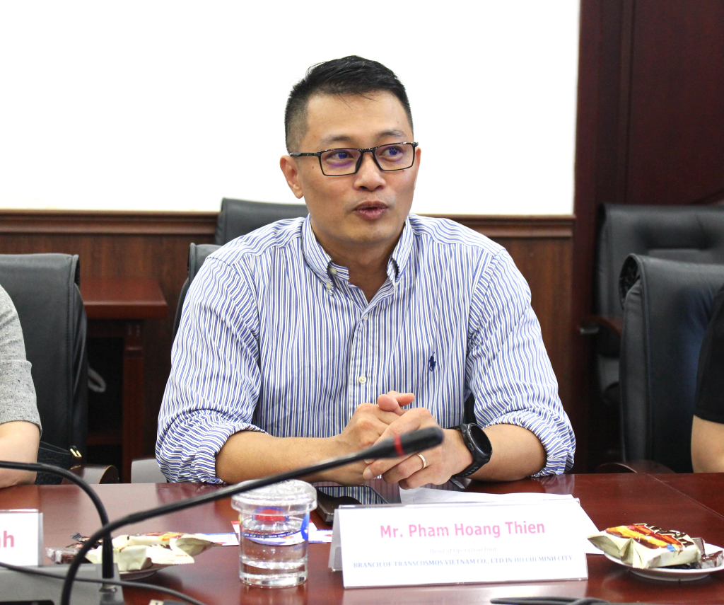 Nói về định hướng sắp tới của công ty, ông Phạm Hoàng Thiên, Trưởng Bộ phận Vận hành cho biết, transcosmos đang mở rộng dịch vụ cho các khách hàng nước ngoài. Vì thế nhu cầu tuyển dụng sinh viên các ngành ngoại ngữ, đặc biệt là sinh viên của Trường ĐH KHXH&NV ngày càng cao. Ông nhấn mạnh: “transcosmos tạo điều kiện cho tất cả các bạn ứng viên, khi tham gia transcosmos các bạn sẽ được hỗ trợ rất nhiều về kỹ năng mềm trong công việc. Ở đầu vào, công ty sẽ chỉ tập trung vào kỹ năng ngoại ngữ và thế mạnh vốn có của từng bạn”.
