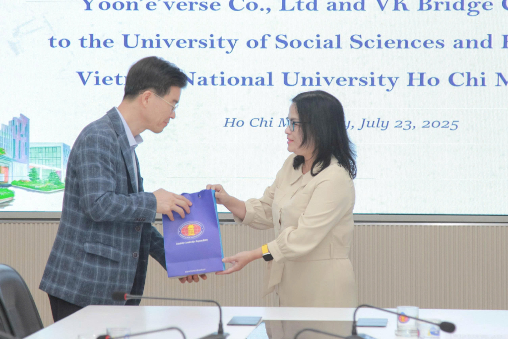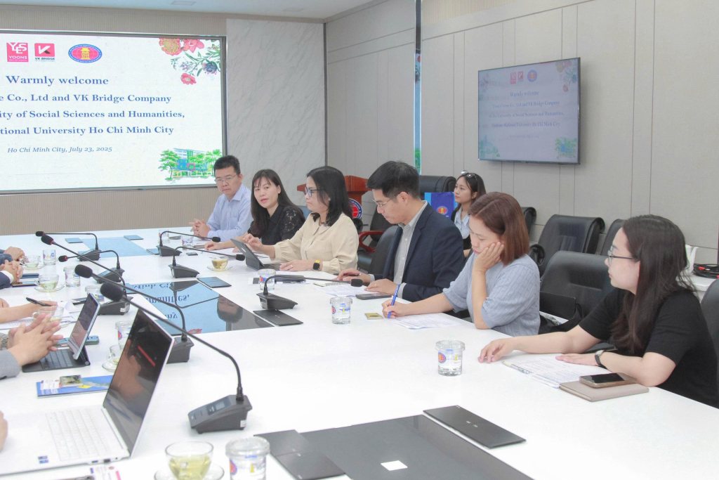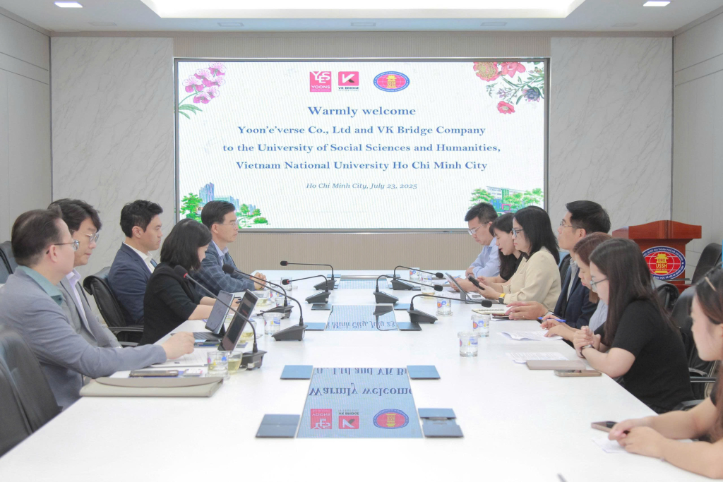 Chiều ngày 23.7, Trường Đại học Khoa học Xã hội và Nhân văn, ĐHQG-HCM đã có buổi làm việc với Công ty Yoon'e'verse và Công ty VK Bridge nhằm khám phá những cơ hội hợp tác chiến lược trong lĩnh vực giáo dục ngôn ngữ và ứng dụng công nghệ AI. Đây là một trong những hoạt động cụ thể hóa định hướng chuyển đổi số trong giảng dạy, từng bước đưa công nghệ vào hỗ trợ quá trình đào tạo, nâng cao chất lượng và trải nghiệm học tập cho người học.