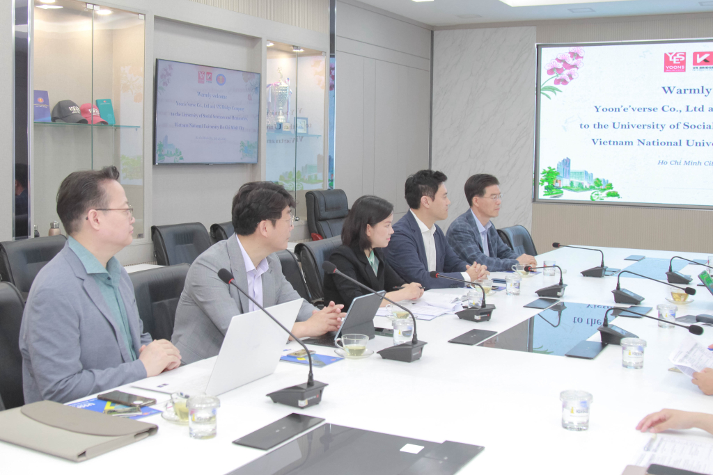 Đại diện đối tác, ông Yoon Sung, Tổng Giám đốc Công ty Yoon'e'verse, đã giới thiệu lịch sử hơn 40 năm phát triển của công ty trong lĩnh vực giáo dục tiếng Anh tại Hàn Quốc. Yoon's là một trong những thương hiệu giáo dục uy tín, với hệ thống hơn 1.700 trung tâm đào tạo, 5 triệu học viên và nhiều giải thưởng đổi mới giáo dục. Bên cạnh đó, TS. Sung Lee, Đại học Quốc gia Seoul, cũng đánh giá cao tiềm năng và uy tín của Trường Đại học KHXH&NV, ĐHQG-HCM trong đào tạo ngôn ngữ, đồng thời chia sẻ lý do thúc đẩy kết nối giữa công ty và Nhà trường nhằm cùng phát triển các chương trình hợp tác chiến lược.